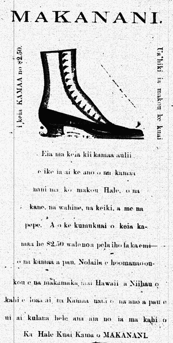 There is a tiny waa of the old sort, like those of the time of Kamehameha or perhaps before that; it is being displayed at the store of McInerny [Makanani] on Fort Street. The small waa is in good condition, and is truly beautiful to see. Antiquities are something those of today have much interest in. Canoe building will be demonstrated as a means to earn some money for that festive day of June, the holiday for Ka Na’i Aupuni, Kamehameha.