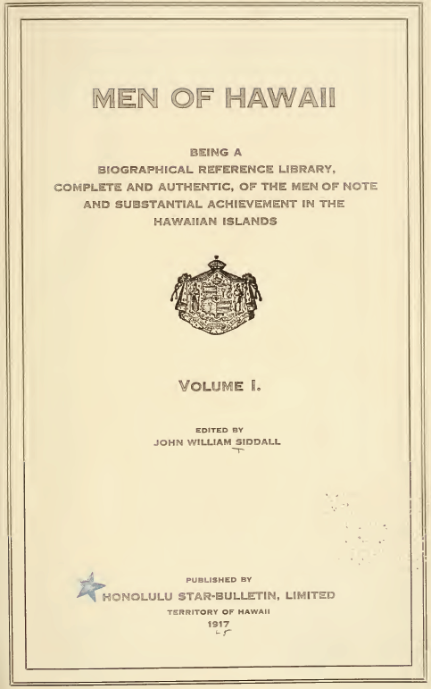 (Siddall, John William, ed. “Men of Hawaii,” Honolulu: Honolulu Star-Bulletin, Ltd. 1917.)