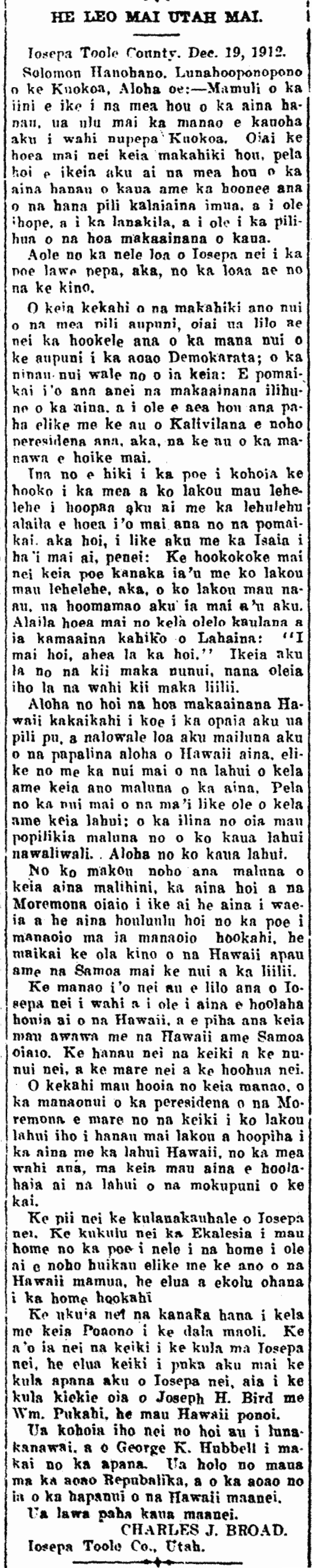 (Kuokoa, 1/17/1913, p. 6)