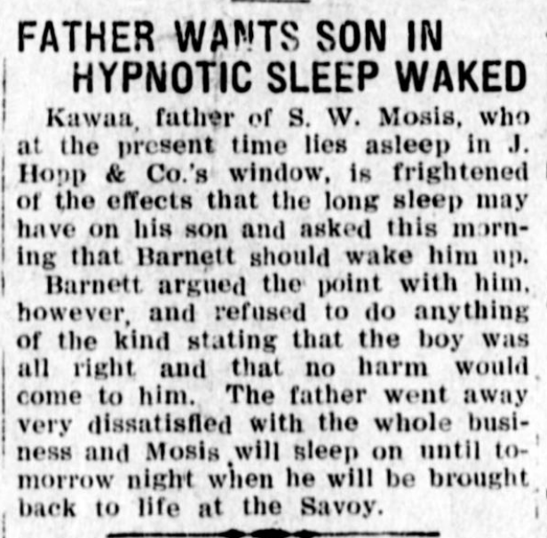 Many here in Honolulu have not forgotten Moses Kawaa, the Hawaiian boy who was made to sleep in the window of the Lewers & Cooke building for twenty-four hours, two years ago.