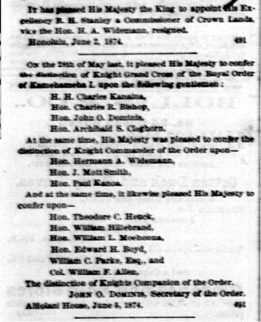 Honolulu, June 2, 1874.