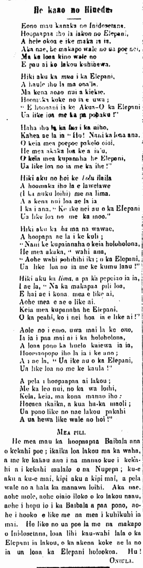 George W. Kanuha was born in 1845 in the town of Kailua, North Kona, Hawaii, of the streaked sea, the peaceful sea at Kalaiaehu, ever moistened by the amazing rains of the land of his birth in the face of the clouds. And he passed on to the other side of the black river, that line before the animals life and plant life which forever moves toward the final Great Revelation in the City of heaven. On the 16th day of this month, G. W. Kanuha travelled one last time in the shade of the ulu trees of Lele [Lahaina] in the sparkling sun and the red dirt of his welcoming home, sinking into the eternal home, the belly of the earth following after papa and mama. Aloha ino.