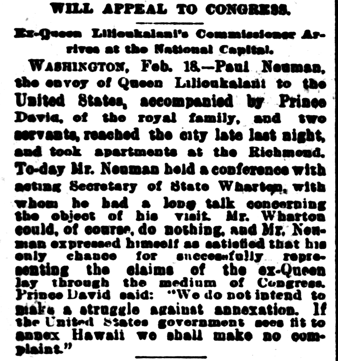 [When looking at anything, like this article, it is important to try and understand the context. The Kuokoa, during this period at least, seems to be pro-annexation and pro-American. By reading this and the rest of its pages, you can see it is definitely not pro-Monarchy!