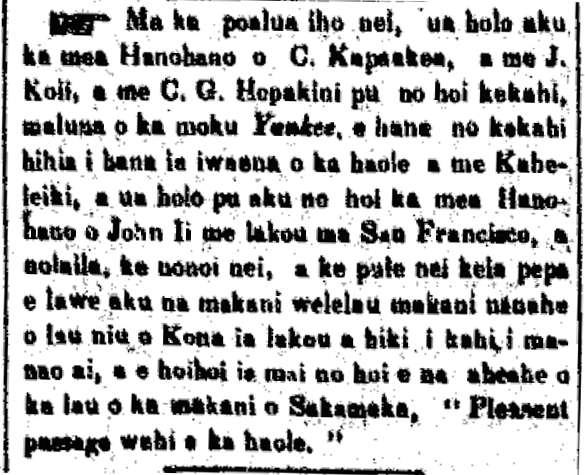 [See earlier article: Government officials to go to California to defend a Hawaiian citizen. 1863.]