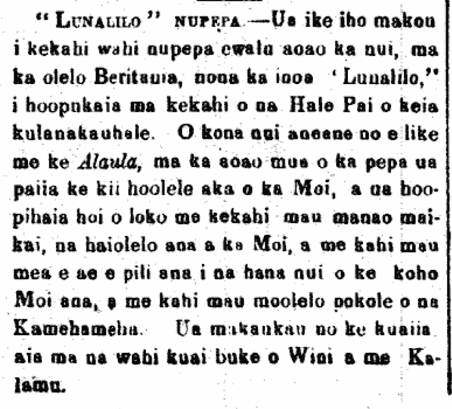 A newspaper called, “Lunalilo” 1873.