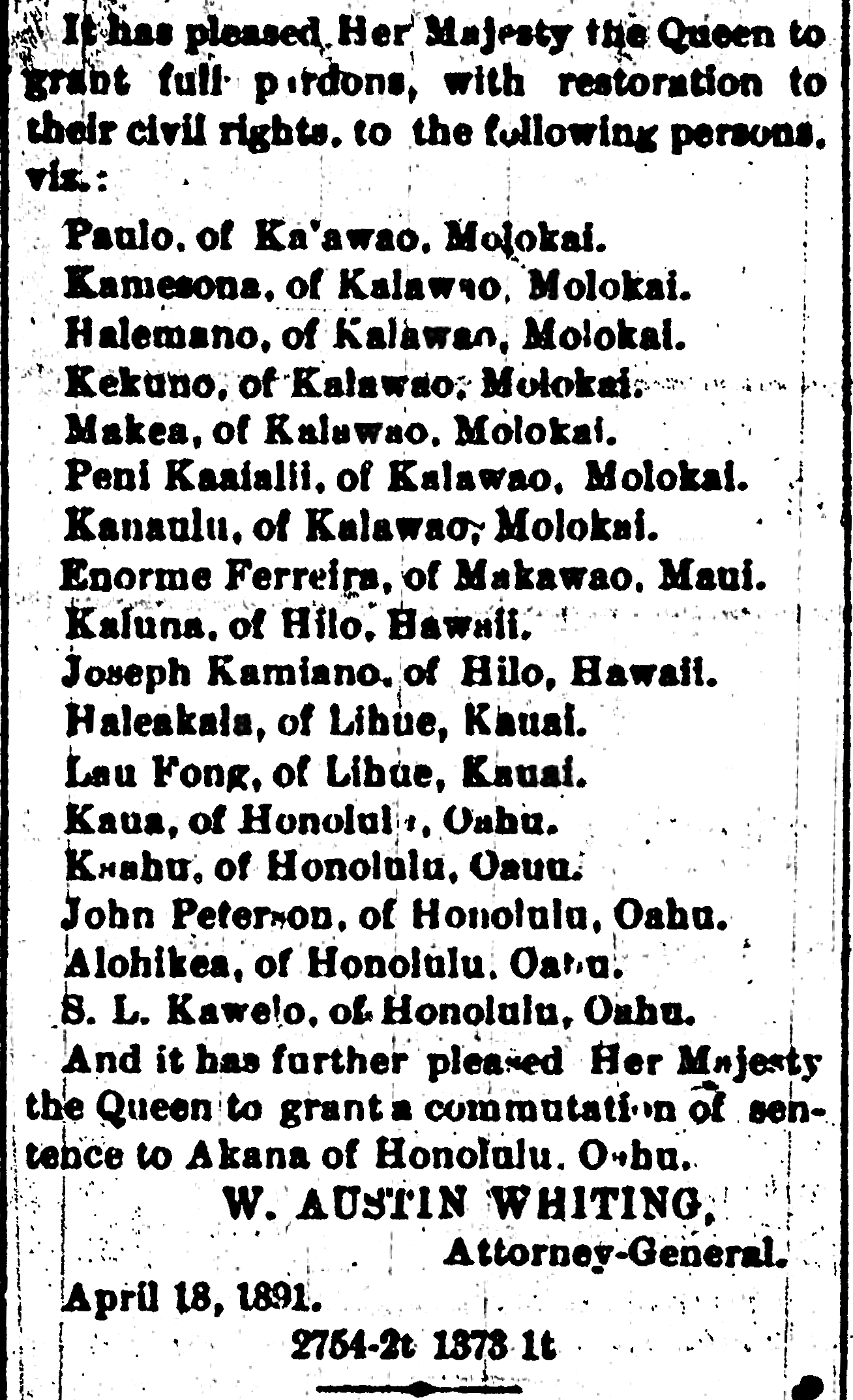 (Hawaiian Gazette, 5/5/1891, p. 4)