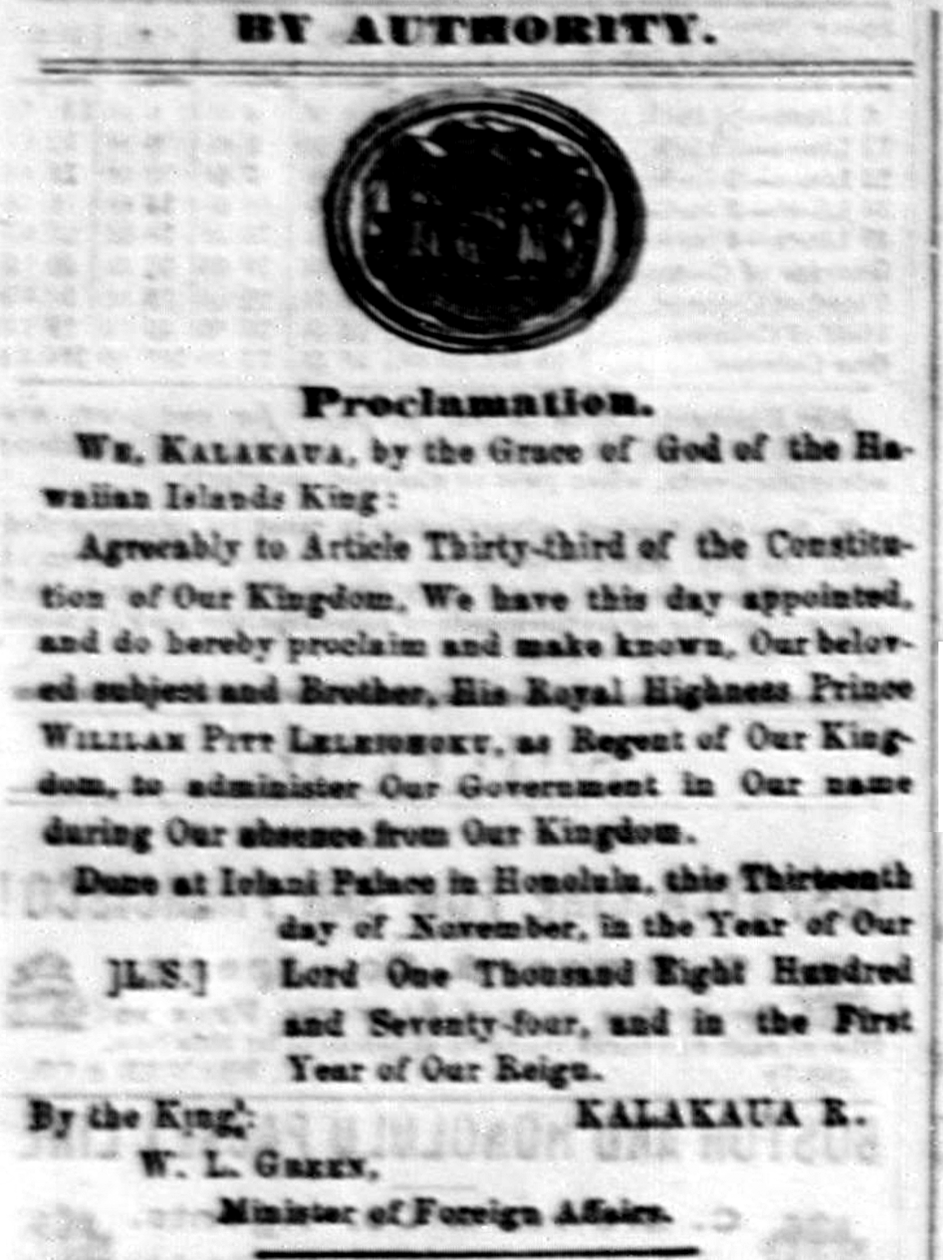[You never know where you will find information. I have not been able to find mention of this speech by Leleiohoku in 1874, but 17 years later…]